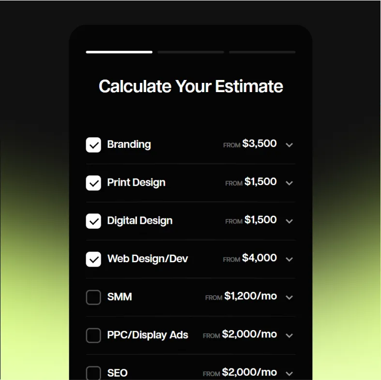 Not every business needs the same services. Use our calculator to pick what fits your goals and budget, then get a starting estimate before we talk.